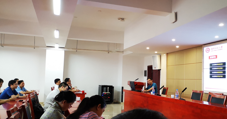 7月10日下午,我院于立言楼B4-1召开师范专业认证经验交流会。此次会议由湖南师范大学地理科学系主任邓楚雄教授担任主讲人,我校教务处评建办副主任余光辉主持,我院院长刘奇玉,副院长聂志军、欧阳萍,化学与化工学院副院长陈述、生命科学学院副院长周定港、外国语学院副院长曾建松以及各学院师范专业认证建设工作负责人等到场与会。