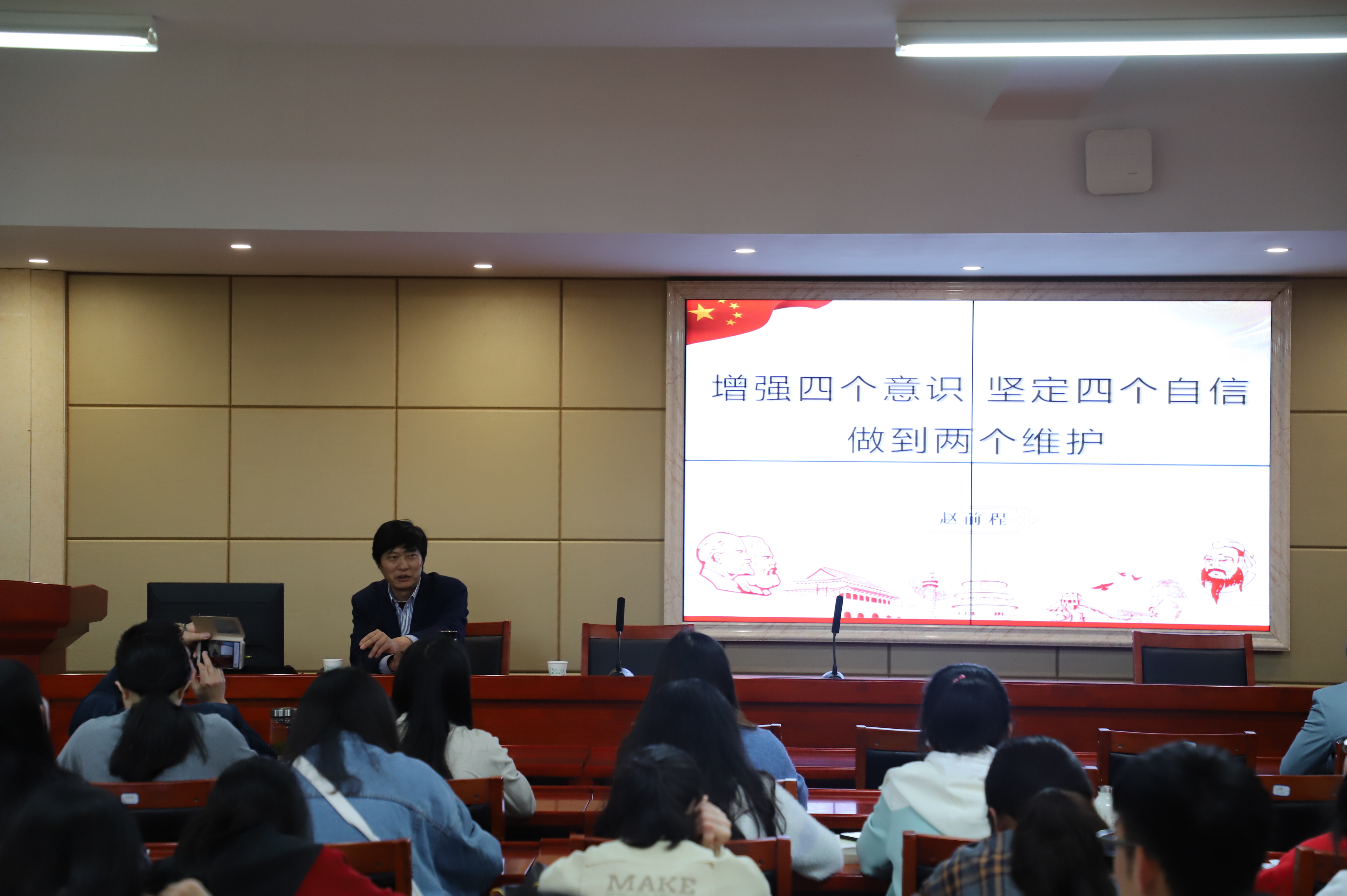 应华体会注册大厅党委邀请,校党委委员、统战部长赵前程教授于4月16日下午在立言楼4-1报告厅为我院教工第五支部的党员老师和学生入党积极分子讲了一堂主题为“增强四个意识、坚定四个自信、做到两个维护”的精彩党课。