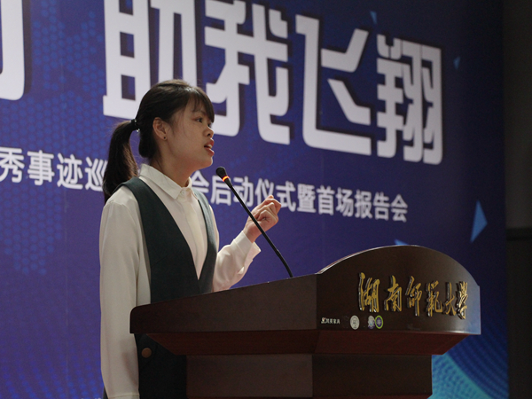 吴玉容代表华体会注册大厅参加湖南省普通高校国家奖学金获得者优秀事迹巡回报告会
