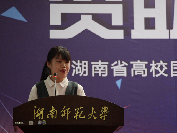 华体会注册大厅15级汉语言专业吴玉容劈波斩浪经过层层选拔,成为首次报告会五位报告人之一,向在场的包括湖南中医药大学、湖南商学院、湖南财政经济学院、湖南第一师范学院、湖南涉外经济学院、长沙医学院、湖南师范大学在内的7所高校的老师、学生代表讲述自己的成长经历、奋斗历程。