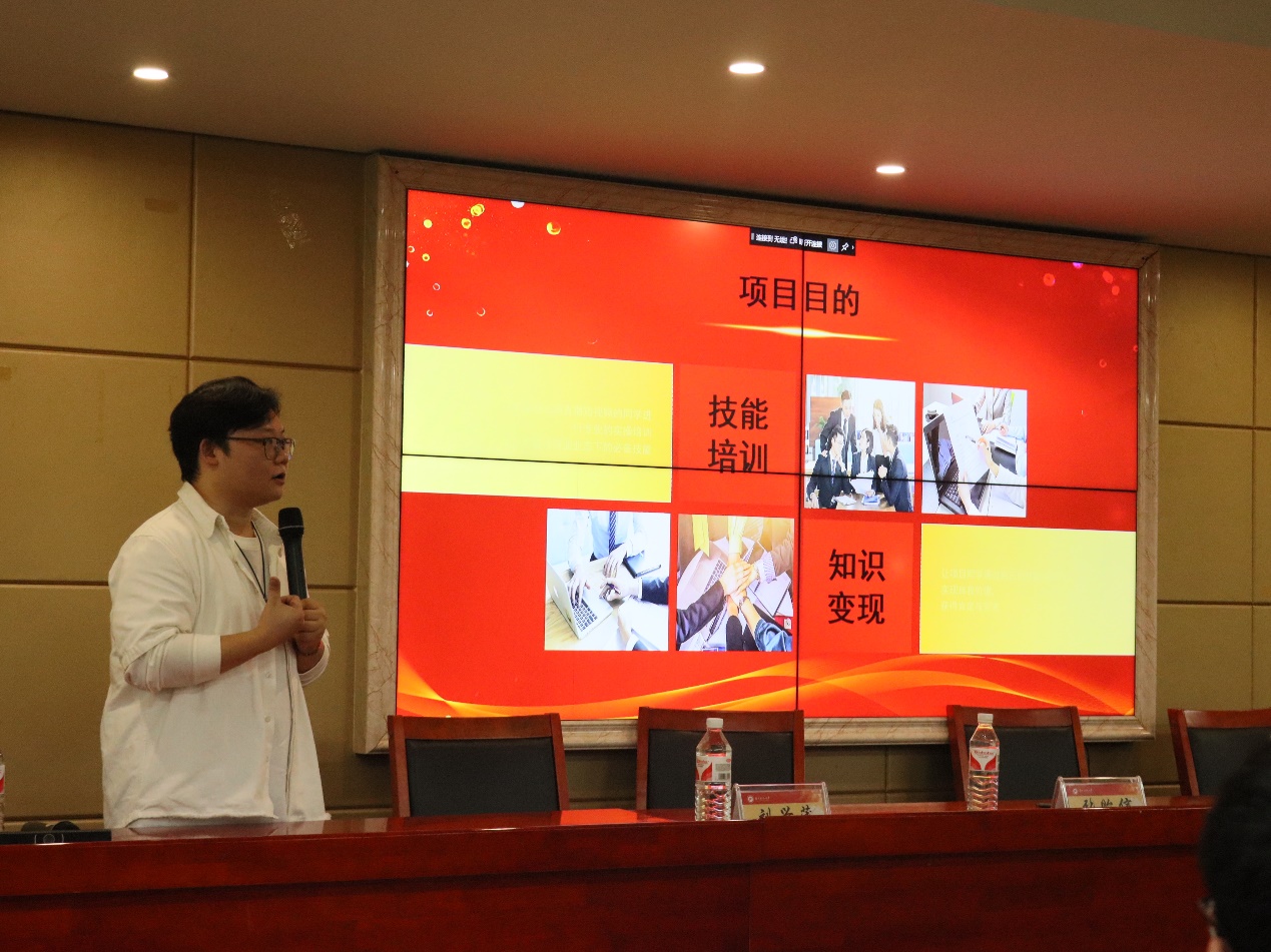 (来点儿传媒有限公司联合创始人兼高级培训师俞宗敏向学生介绍直播带货项目)