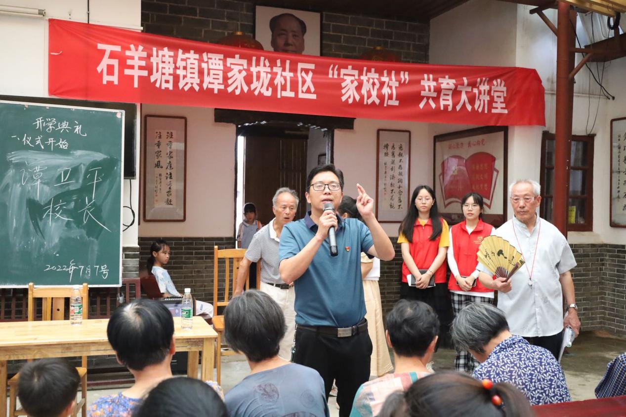 7月7日,儿童之家暑期学校开学典礼于石羊塘镇高桥村风雨棚内举行,石羊塘镇副镇长李鑫出席并发表讲话,他强调了暑期学校的日常规则并对华体会注册大厅华体会注册大厅暑期“三下乡”活动给予高度肯定与支持。