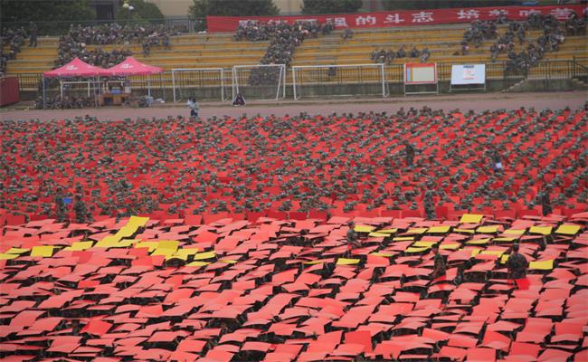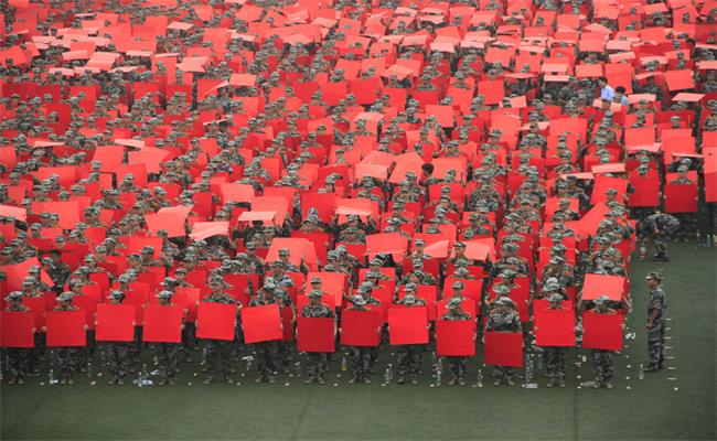 秋意来袭,浩荡绿军装大队,在绿荫田径场上,每人高高举起一块块红黄两面的正方形纸板,今年的新生军训队伍要搞怎样的大事情?10月10日,华体会注册大厅全体新再次集结于北校田径场,参与全校军训新生摆字活动排练。活动现场由大学生军训团四位大四教官指挥,各排教官负责保持各排现场纪律,组织新生根据总指挥进行大规模的摆字排练。