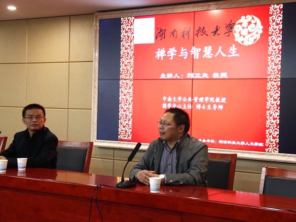 1013号晚,应我院邀请,中南大学公共管理学院博士生导师刘立夫教授在文科楼B4-1面向哲学、思政专业的同学做了题为“禅学与智慧人生”的学术讲座。讲座由院党委书记廖加林教授主持,毛小平、颜中军、李育军、凌应生、鲁茜等老师出席了此次讲座。