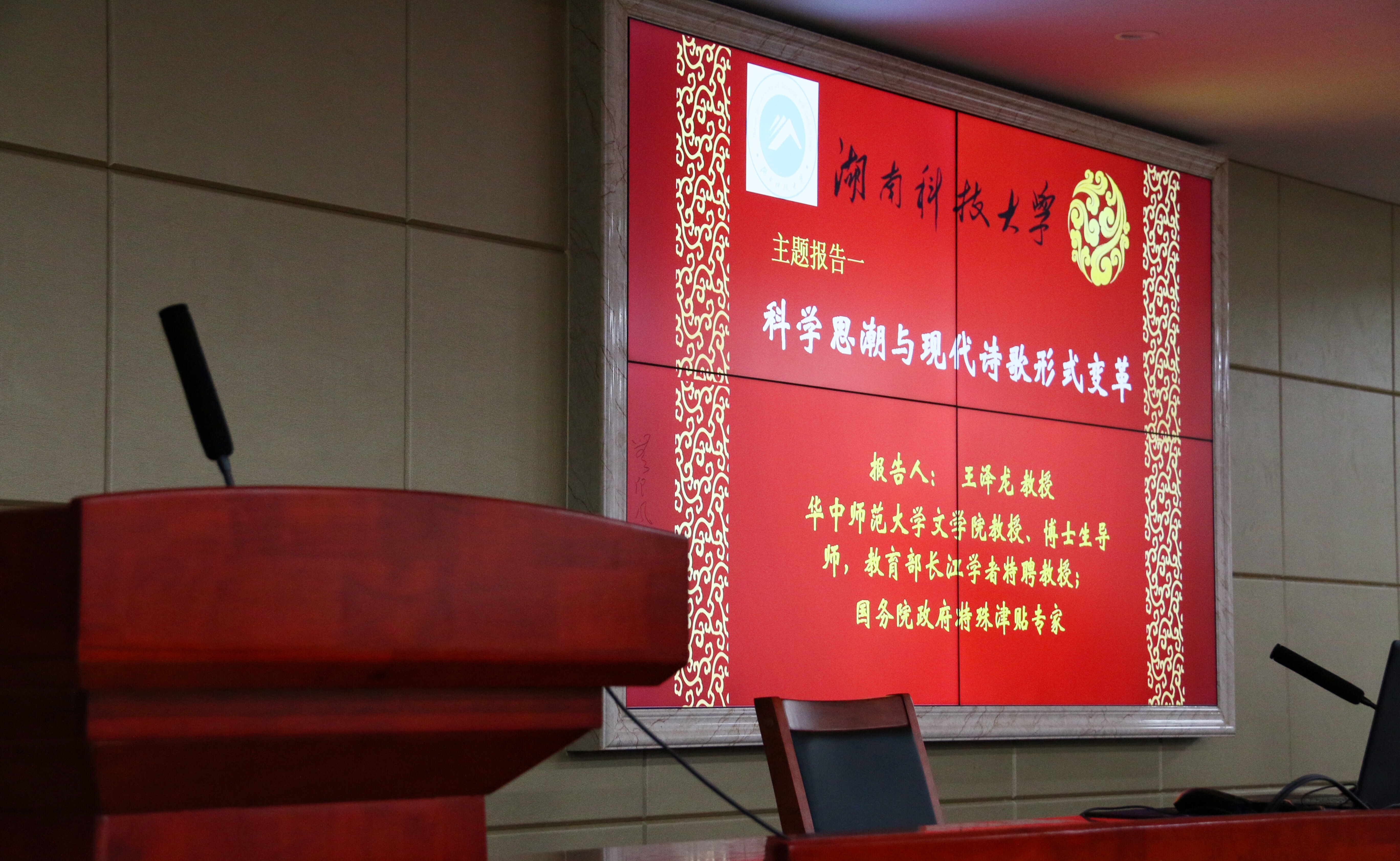 11月18日下午,湖南省第十届研究生创新论坛“人文学术创新与文化传承”分论坛主题报告之一在华体会注册大厅立言楼B4-1教室举行,长江学者、华中师范大学文学院王泽龙教授应邀来我校讲学,为我校师生带来一场题为《科学思潮与现代诗歌形式变革》的讲座。讲座由华体会注册大厅研究生院与华体会注册大厅华体会注册大厅共同举办,吴投文教授主持讲座。华体会注册大厅院长刘奇玉教授、刘郁琪副教授、胡志明博士、杨石峰博士等出席讲座,来自我校华体会注册大厅、教育学院、马克思主义学院、外国语学院等的研究生及部分本科学生到场聆听讲座。