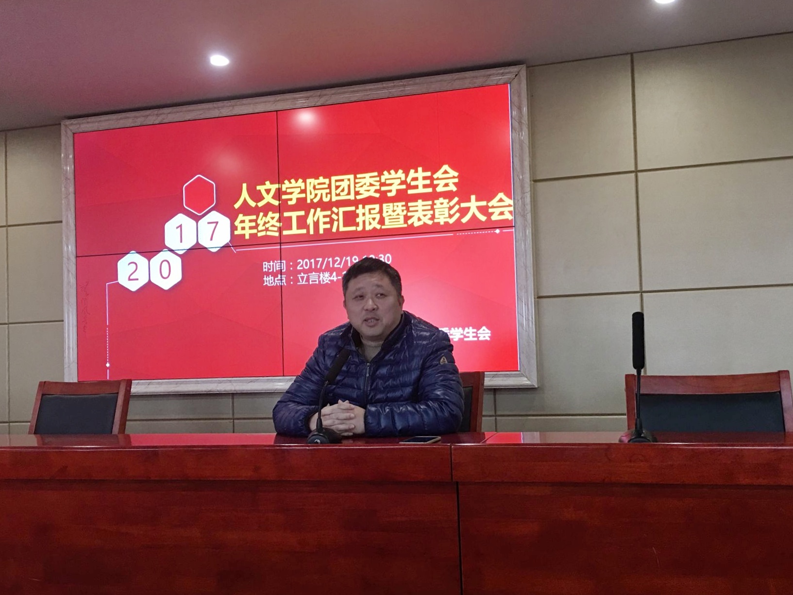 为推动学生会工作顺利开展,更好地激励各部门砥砺前行,12月19日中午,我院于立言楼B4-1室举行2017年团委学生会半年工作汇报暨表彰大会。我院党委副书记邓辉、学工办主任马忠石、学工办成伟明、赵华、赵晗冰、王嘉敏、钱子凡等领导老师参加,我院团委学生会干部和17级各班班长与团支书到场聆听此次汇报会。