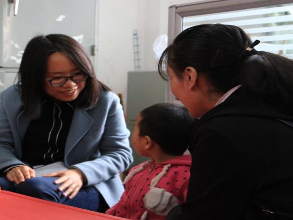 “小朋友们知道雷锋叔叔赠手套的故事吗?”曾多次去往湘潭市特殊学校支教的吴玉容为孩子们讲述了关于雷锋叔叔“赠手套”的故事。她用颇具教育意义的正能量故事让孩子学会应该如何帮助别人,如何用一颗善良的心对待身边需要帮助的人。随后,她耐心地示范并教小朋友们学习“雷锋叔叔”这四个字的正确发音,孩子们都咿咿呀呀跟着吴玉容学习发音,得到了许多“小星星”奖励。
