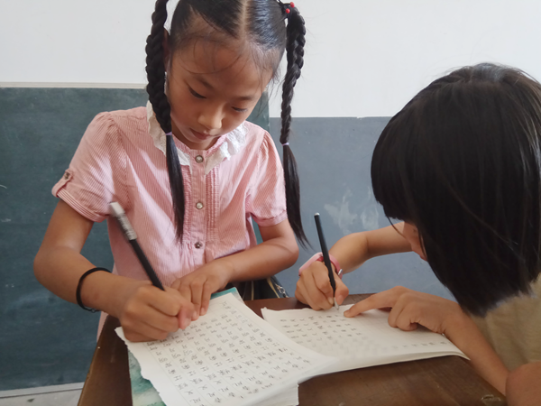 “汉字是中国人的杰作,它的书写要求有一定的标准,最基本的就是笔画正确,间架结构合理。中国人写好中国字应是天经地义的事。我们更要从小做起……”四年级的教室里,学生们正在聚精会神的听他们语文老师伍园园讲解汉字的重要性。中国书法博大精深,源远流长,汉字是一种象形表意方块形字体,是我国艺术瑰宝,练字从小学抓起十分之必要。