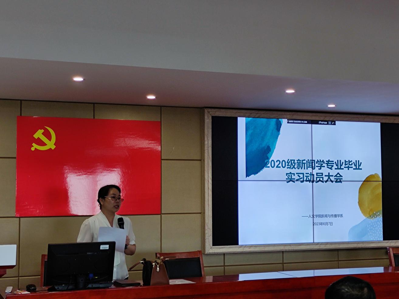 6月7日下午,我院2020级新闻学专业毕业实习动员大会于立言楼B4-1室顺利召开。本次大会由华体会注册大厅新闻系主办,华体会注册大厅副院长袁星洁,新闻系主任刘艳凤、副主任王超群、新闻系老师、20级本部及潇湘新闻专业学生参加本次会议,会议由刘艳凤主持。
