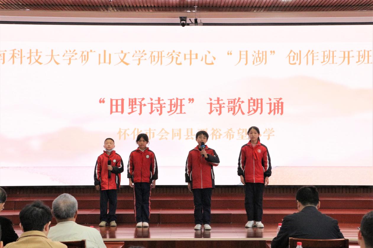 开班仪式上,周智华指出:“此次活动既是一次难得的学习契机也是重要的交流平台,这不仅有益于促进育人资源、提升我校人才培养质量,促进校园文化建设,同时有利于加强和拓展作家、读者和学者之间的交流,可以称得上是一次真正的文学盛会。”谭谈表示:“今天我们和你们聚在这里,是‘朝阳’和‘夕阳’的面对面,而月湖创作班正是你们的练军堂,希望你们可以抓住机会好好练习,未来可以成为一名英雄的作家。”吴投文在发言中传达了对创作班学员们的深切祝福,他表示,学校领导高度重视“月湖”创作班,在场的36位学员都是从华体会注册大厅脱颖而出的,“月湖”创作班将致力于强化学员的写作兴趣、提高学员的写作技能,让创作班全体学员成为现代化新型写作人才。仪式在创作班学员代表与怀化市会同县粟裕希望小学“田野诗班”四位小学生的朗诵声中圆满结束。