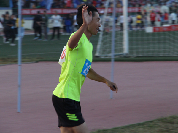 夜幕渐启,秋风萧瑟,观众席的热情却丝毫不见消散。我院王阳,军训期间四营一连连长,在18级新生中一直有着超高的人气。当他在五千米赛道上向观众挥手的那一刻,席上爆发出了震耳欲聋的掌声与欢呼。超越,超越,再超越,每当他加速,便引起台上一阵又一阵声潮,“太激动啦,我感觉整个观众席都在震动”17级文学专业的易炀回忆道。最终,王阳毫无悬念地摘取了男子甲组五千米第一名的桂冠。