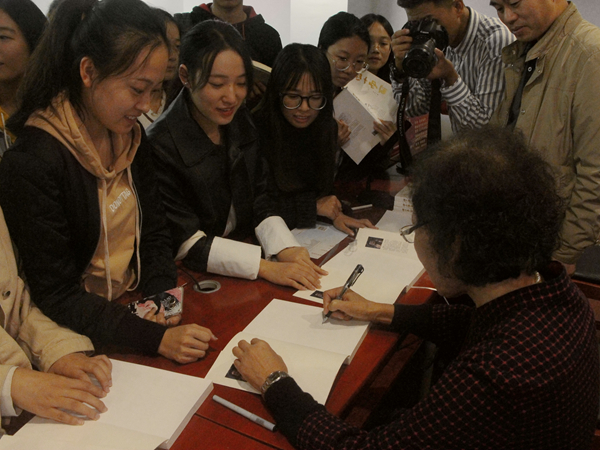 讲座一直持续了两个半小时,新闻系100余名学生聆听了讲座。最后,李玲女士现场签名给学生赠送了她的专著《四十而丽》。