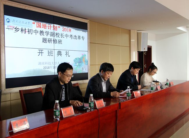 10月28号上午,我校华体会注册大厅承办的“国培计划”(2018)——农村初中教学副校长中考改革专题研修班开班典礼于立言楼B4-1举行。副校长周飞跃,华体会注册大厅、继续教育学院相关负责人出席。继续教育学院刘晓平副院长担任主持人。