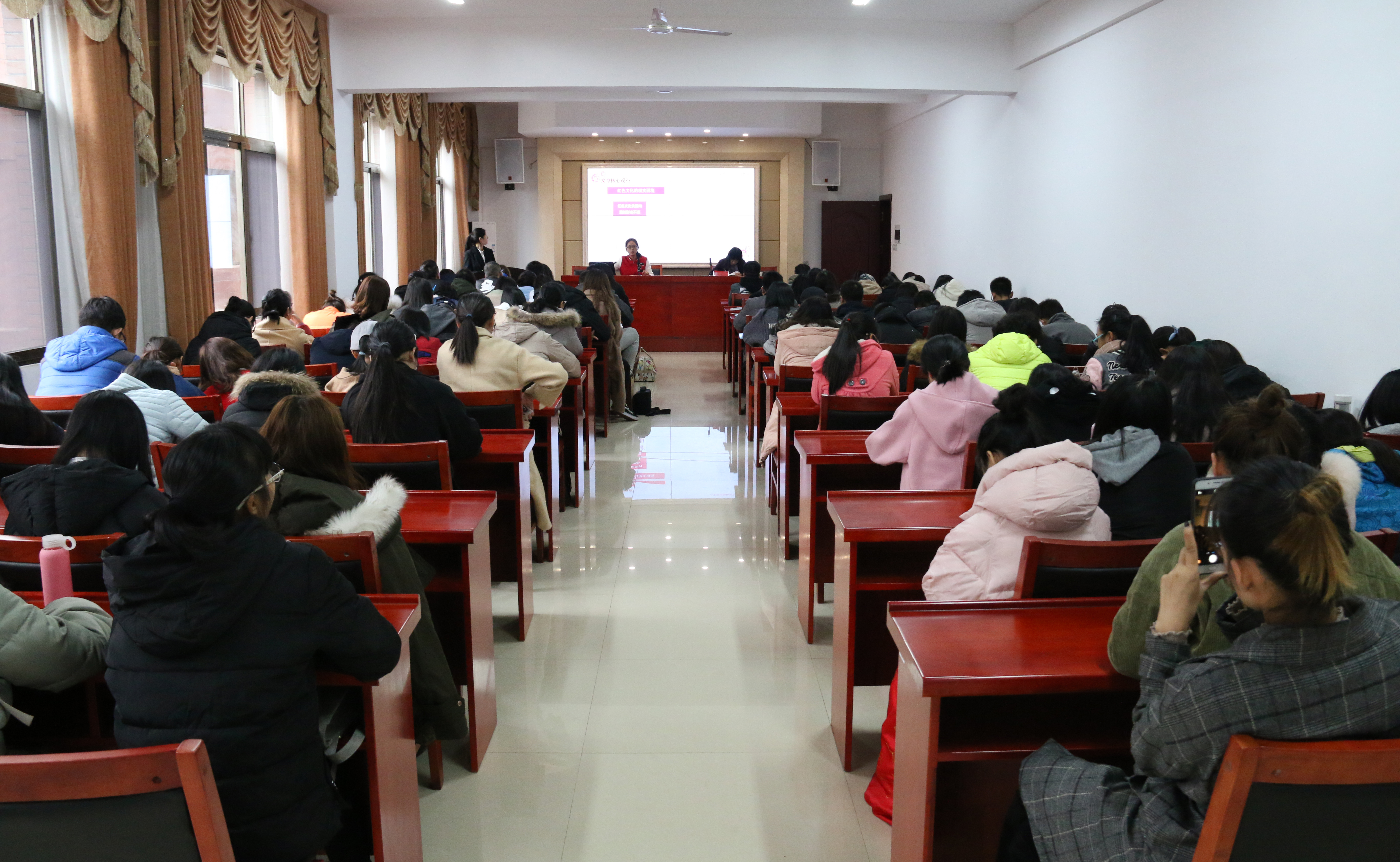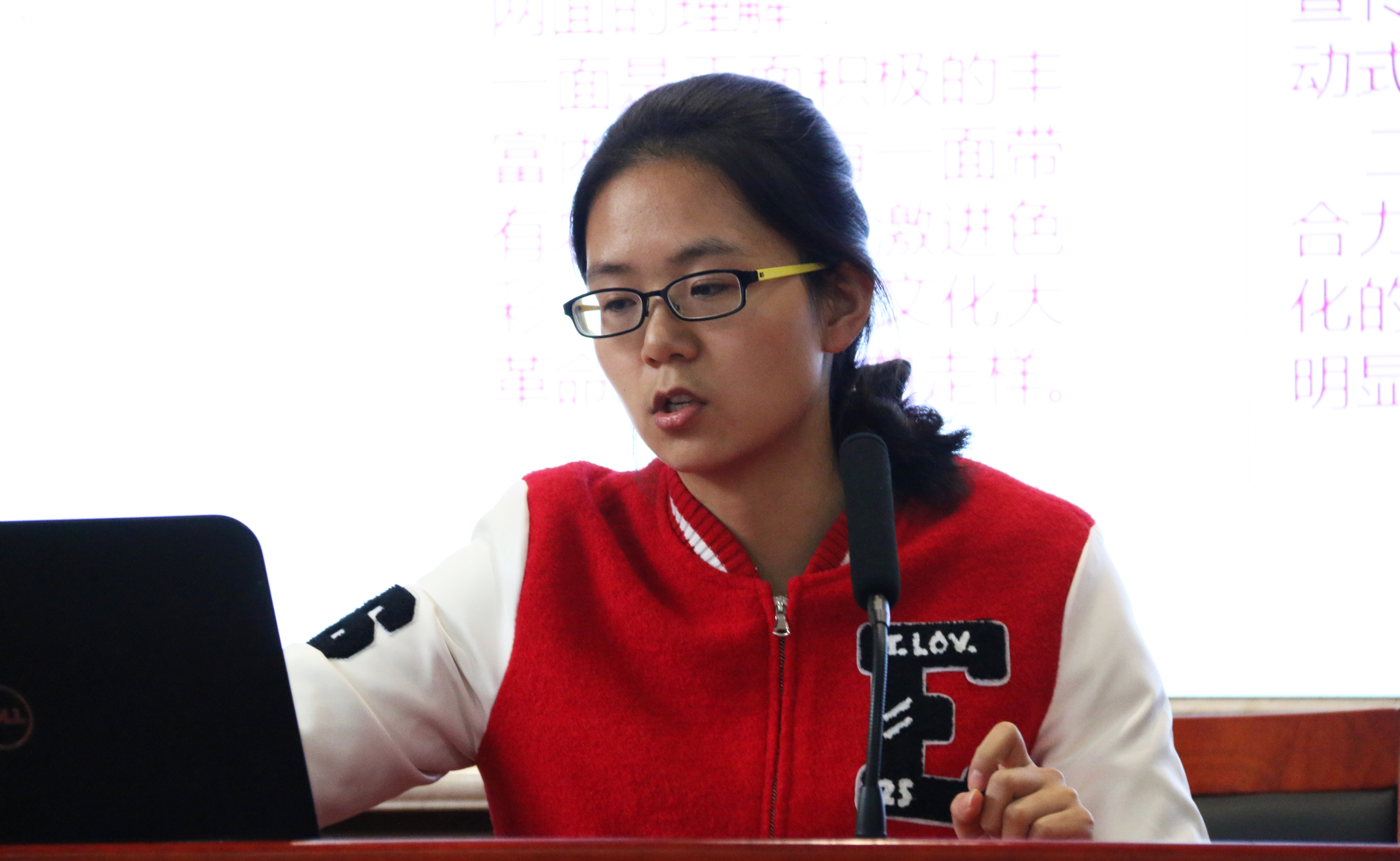 报告会现场,来自湖南大学、中南大学和华体会注册大厅的七位研究生同学先后对自己的报告进行讲解。“红色在中国人眼中是祥瑞之兆,尚红是中国的传统。”中南大学马克思主义研究生杨柳在本次报告会上对中国的红色文化进行深入讲解,首先介绍古今中外对红色文化的不同理解,着重讲解红色文化的产生、现实困境以及其当代价值。从五四新文化运动时期红色文化的产生到讲述红色文化在当代对教育、文化、精神的影响及价值,其每个方面都有独特的见解。杨柳在报告最后用自己的一句话鞭策在场的学生:“理想若星辰,红星照我去战斗;信念如长风,直挂云帆济沧海。” 文化的创新是在不停地反思与继承中进行的,我们应不断反思自己不断创新发展。