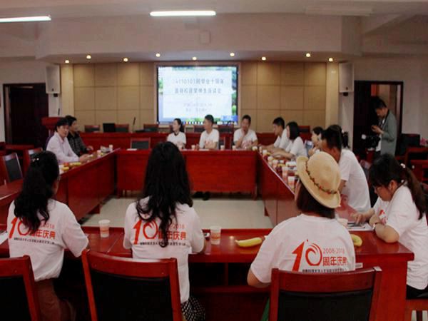 4月1日上午,04级汉语言文学三班于立言楼B4-1举行了毕业十周年座谈会,15位来自天南地北的校友重新相聚在一起,我院院长刘奇玉、校友工作服务部罗振军以及吴广平、吴投文、张学知等老师出席。
