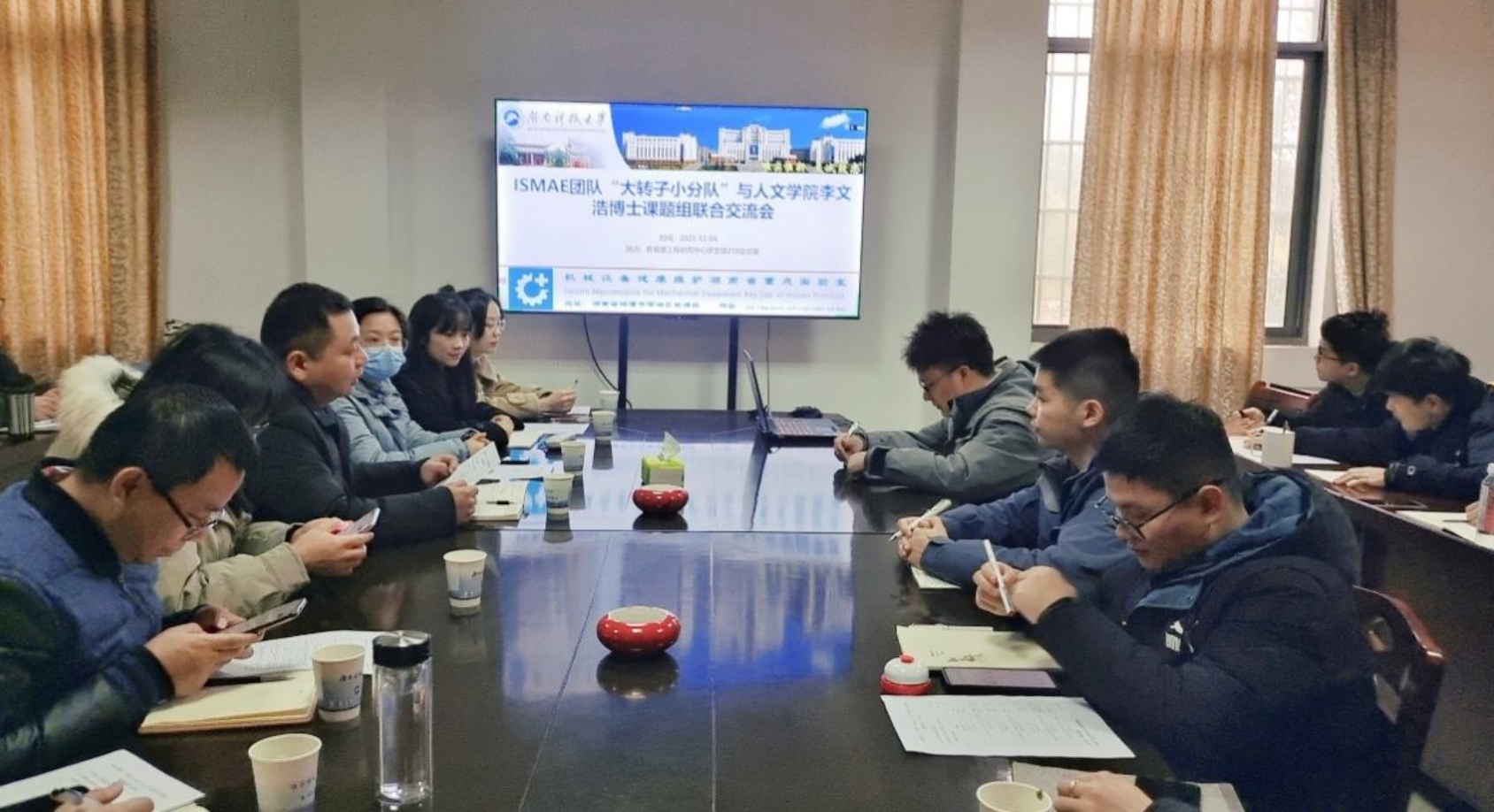 为提升研究生培养质量,增强不同学科间的互动、交流和联系,12月4日下午,我校机械设备健康维护湖南省重点实验室“高端装备智能感知与运维”科技创新团队(简称“ISMAE团队“)大转子小分队与华体会注册大厅李文浩副教授课题组联合开展学术交流活动。活动在工程研究中心219会议室召开,ISMAE团队负责人沈意平教授、、李文浩副教授和宾光富教授,两个团队共计30余人参加。